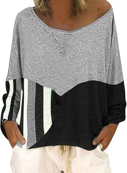 Lexupe Damen Farbblock Brust Ausschnitt Tuniken Langarm Shirts Scoop Neck Bluse Beilaufige Lose Tops B Weiss Small Amazon De Bekleidung