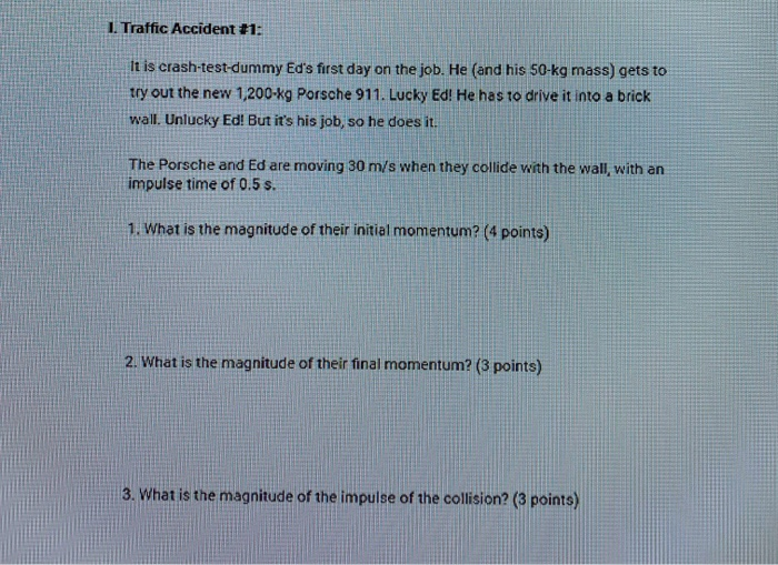 Solved 1 Traffic Accident 1 It Is Crash Test Dummy Ed Chegg Com