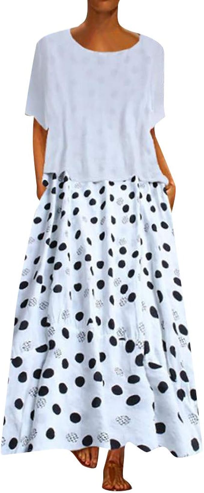 Damen Vintage Kleider Sommer Kurzarm Oansatz Tops Polka Dot Print Rock Patchwork Zwei Stucke Lose Maxikleid Strand lich Tunika Freizeitkleider Leinenkleid Tuchkleid Blusenkleid Amazon De Bekleidung
