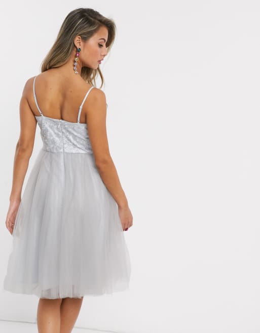 Chi Chi London Ballkleid Mit Spitzenoberteil Und Tullrock In Silbergrau Asos