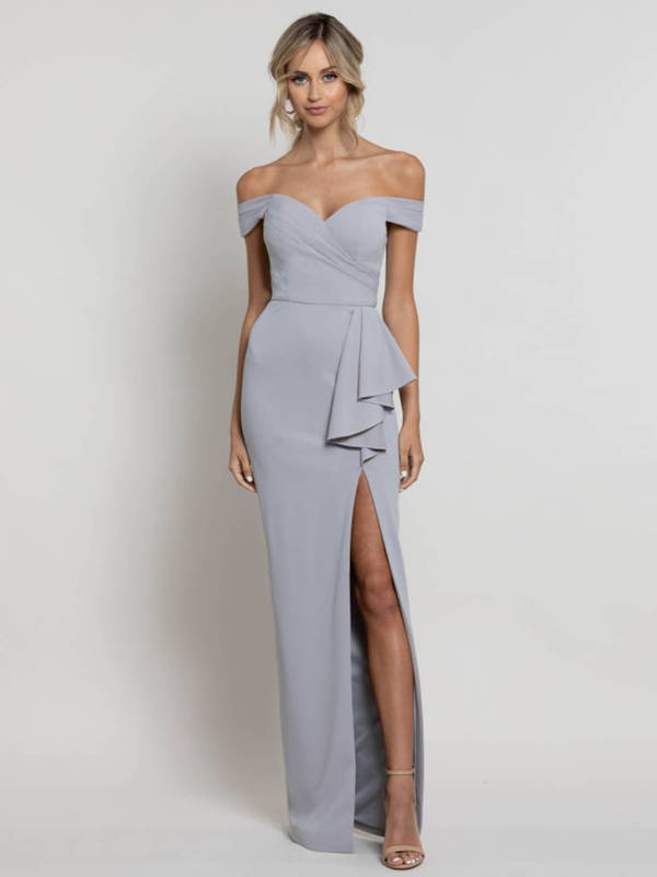 Abendkleid Mit Leichten Armeln In Silbergrau Abendkleider Ballkleider Abendkleid Ballkleid Und Abendkleider Ballkleider
