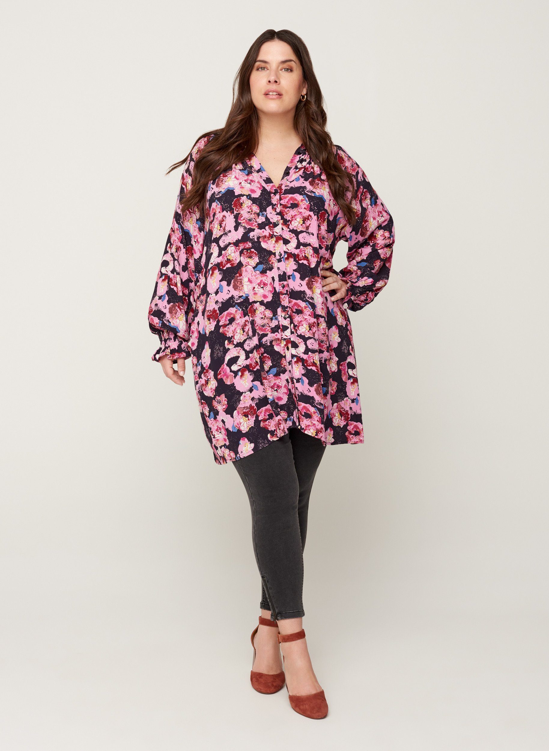 No Secret Langarm Tunika Damen Schwarz Mit Blumen Und V Ausschnitt Mode Fur Mollige Damenmode Online Shop Fur Grosse Grossen