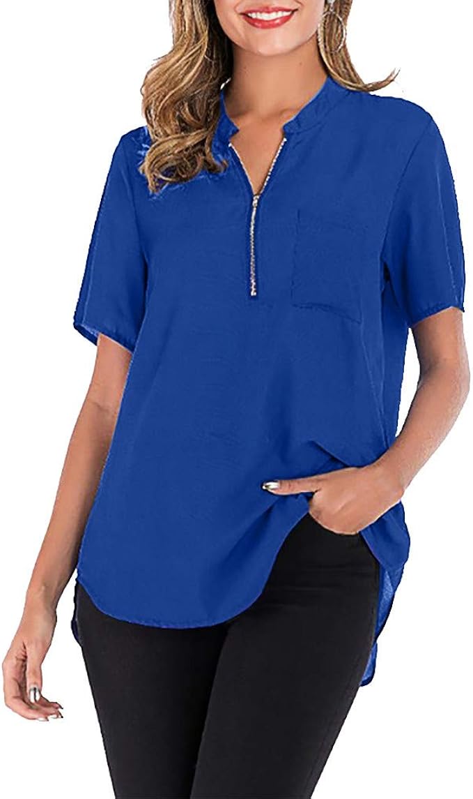 Lopily Basic Damen Chiffon Oberteile Grosse Grossen Kurzarm Shirts Mit Zipper Bluse Einfarbige Basic Bluse Long Shirt Fur Damen Herbst Business Casual Tunika Fur Mollige Bis Gr 50 Amazon De Bekleidung