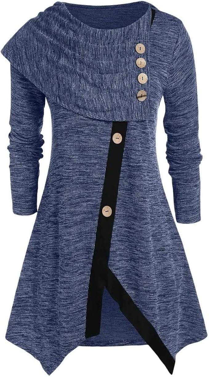 Lopily Pullover Damen Grosse Grossen Asymmetrische Rollkragenpullover Wasserfall Saum Grosser Kragen Pullis Melange Damen Vintage Retro Strickjacke Rockabilliy Tunika Fur Mollige Amazon De Bekleidung