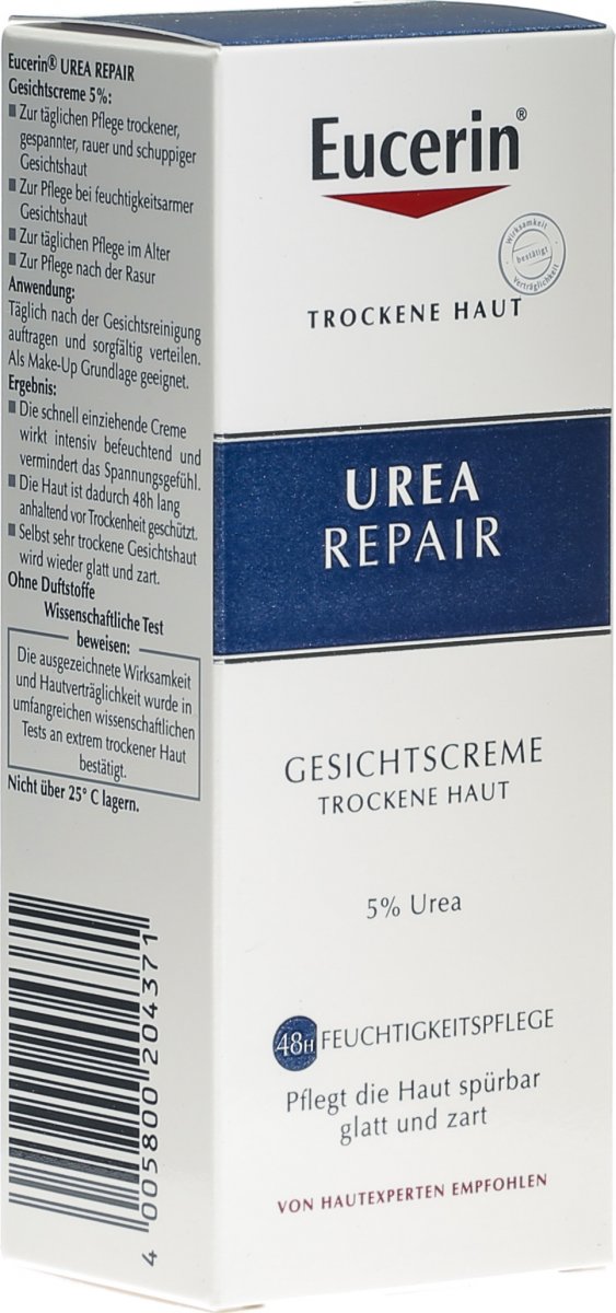 Damit die Haut im Gesicht gepflegt, vital und einfach schön aussieht, braucht man eine gute GesichtscremeDas passende Produkt zu finden kann aber gar nicht so einfach sein, da es bei der Wahl Vieles zu beachten gilt Damit Du noch schneller an Deine Lieblingscreme kommst, haben wir diese Testseite ins Leben gerufen Hier findest Du eine Zusammenfassung von allen Gesichtscreme Tests, die wir. Angereichert mit Urea und Lactat, zwei natürlichen, feuchtigkeitsbindenden Präparaten versorgt die Creme trockene Gesichtshaut sofort mit Feuchtigkeit Das lindert das Spannungsgefühl und macht die Haut spürbar glatter und geschmeidiger Eucerin UREA REPAIR Gesichtscreme 5% bewahrt die Hautfeuchtigkeit und raue Haut wird glatter. Gesichtscreme mit ausgewähltem Feuchtigkeitskomplex aus Urea und Glycerin für lang anhaltende Feuchtigkeit und Schutz der empfindlichen Gesichtshaut Enthält Vitamin E zur Milderung von Hautfältchen 5% Urea 5% Glycerin Panthenol.