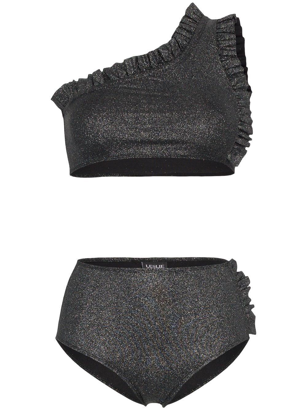 Leslie Amon Synthetic Tamini One Shoulder Ruffle Bikini In Black Lyst