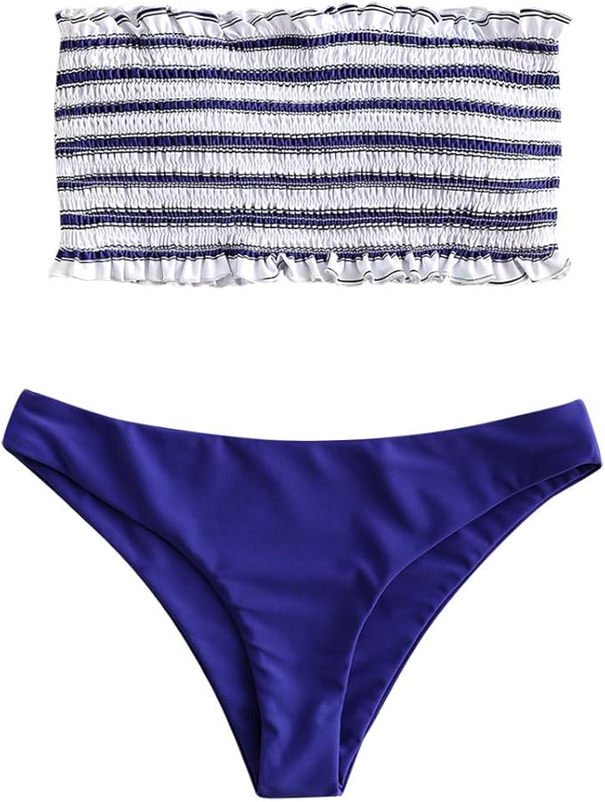 Zaful Women S Two Piece Padded Bikini Sets Striped Bandeau With Ruffle Swimwear Summer Amazon De Bekleidung