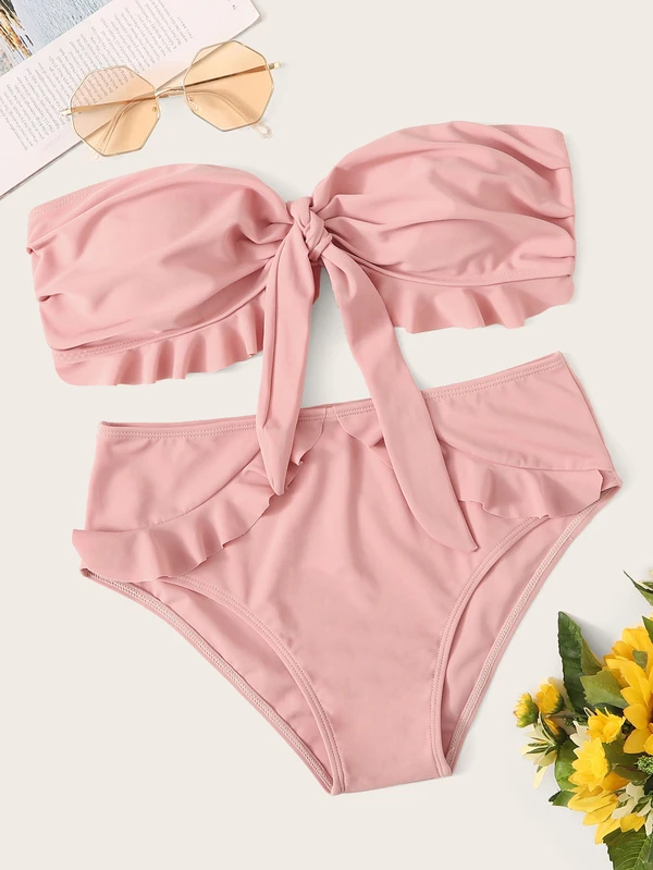 Ruffle Trim Knot Front Bandeau Bikini Set Shein Usa