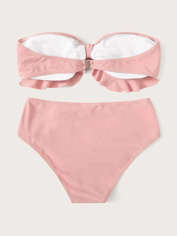 Ruffled Bandeau Top With Low Rise Bikini Set Shein Usa
