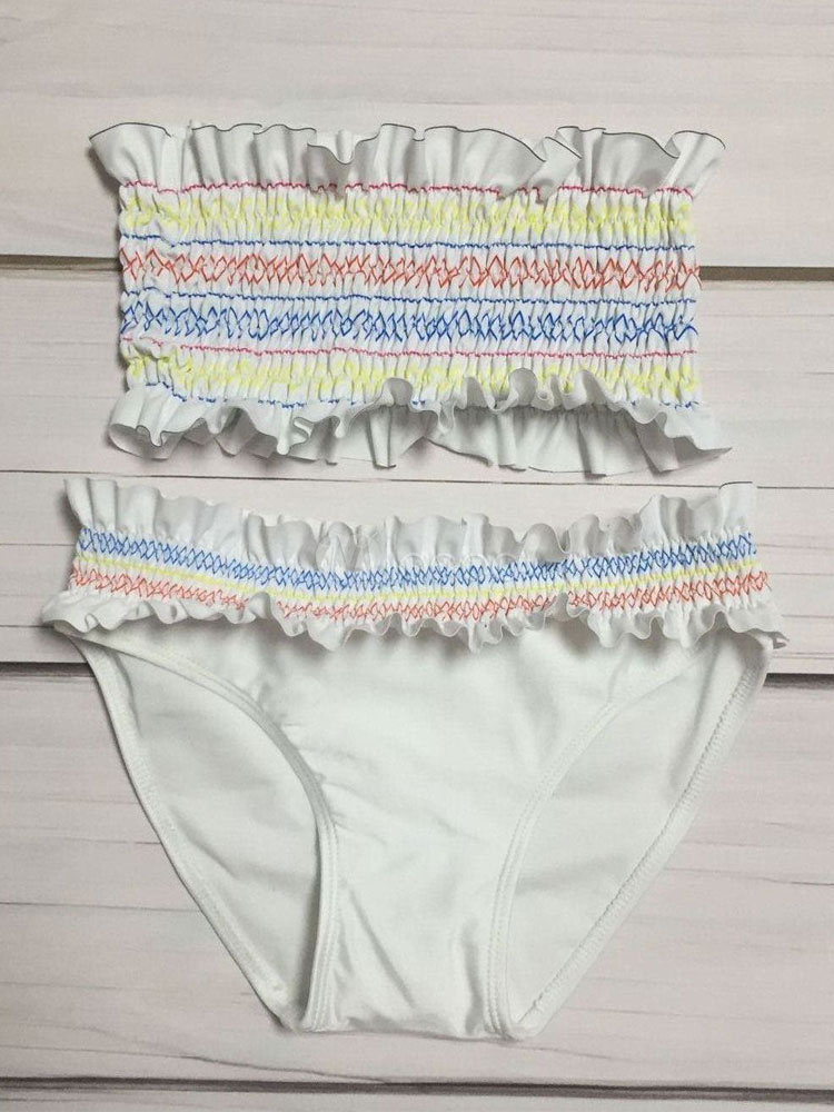 Madchen Bandeau Bikini Mit Ruschen Weiss Bedruckt Madchen