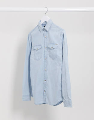 G Star 3301 Schmal Geschnittenes Jeanshemd In Hellblau Asos