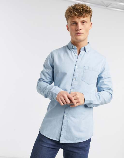 New Look Langarmliges Jeanshemd In Hellblau Asos