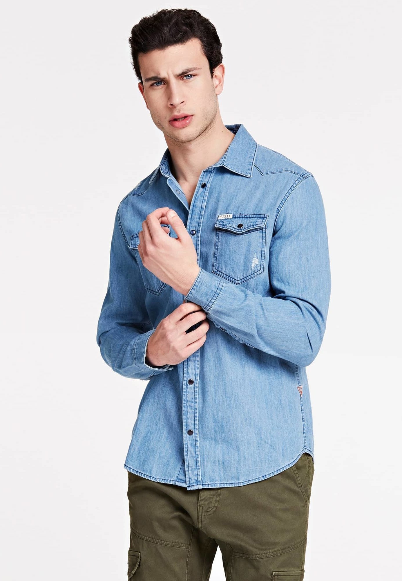 Guess Jeanshemd Slim Hemd Himmelblau Hellblau Zalando At