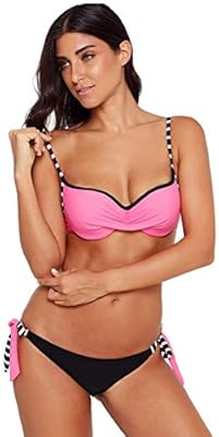 Ahoome Damen Bikini Push Up Gepolstert Streifen Rayures Triangel Brasilianische Bademode Bikini Sets Rosa L Amazon De Bekleidu Damen Bikini Bademode Bikinis