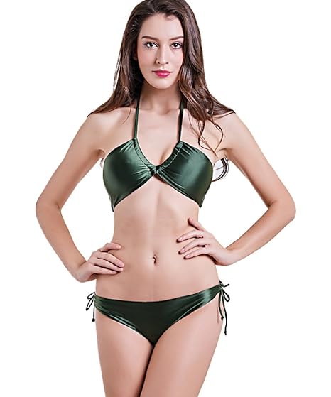 Amazon Com Womens Summer Bikini Triangel Bikini Set Push Up Padded Sparkling Glossy Swimwear Bathing Suits Strap Split Swimsuit Clothing