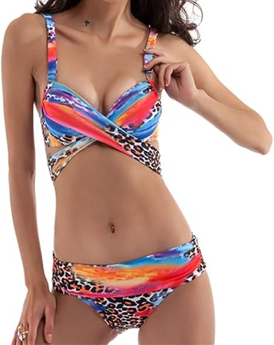 Jkmeoo Women S Bikini Set Two Piece Swimsuit With Push Up Crossover Bikini Top And Triangel Bikini Bottoms Sexy Halter Swimwear Bikini Swimming Costume Watercolor Flowers Amazon Co Uk Clothing