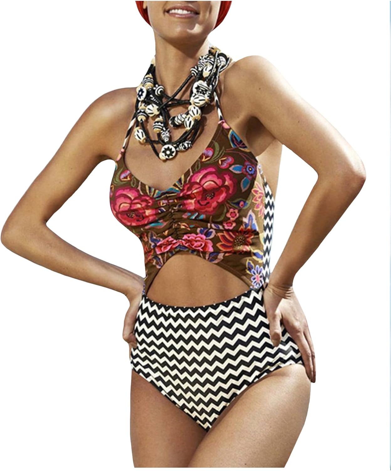 Amazon Com Women Triangel Bikini Floral Printing Two Piece Swimsuit Push Up Padded Bra Beach Halter Bikini Set Swimwear Clothing
