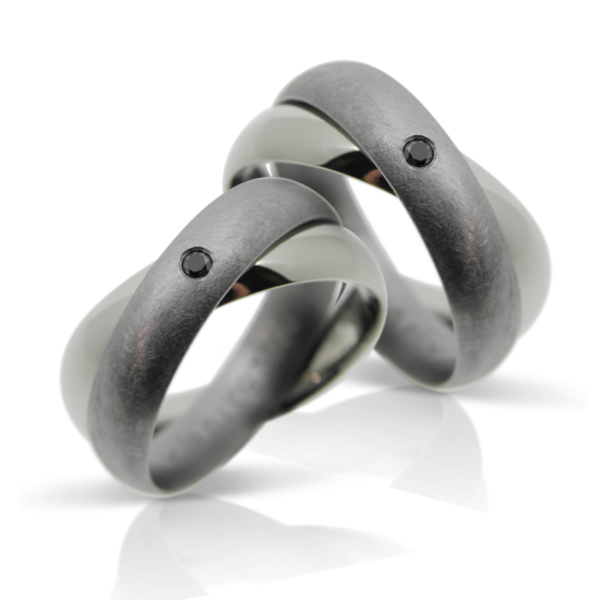 Paar Carbon Trauringe Eheringe In Weissgold 585 Weissgold 585 Carbon Einzug Mit Zus 0 4 Ct Brillant Tw Si Von 123gold