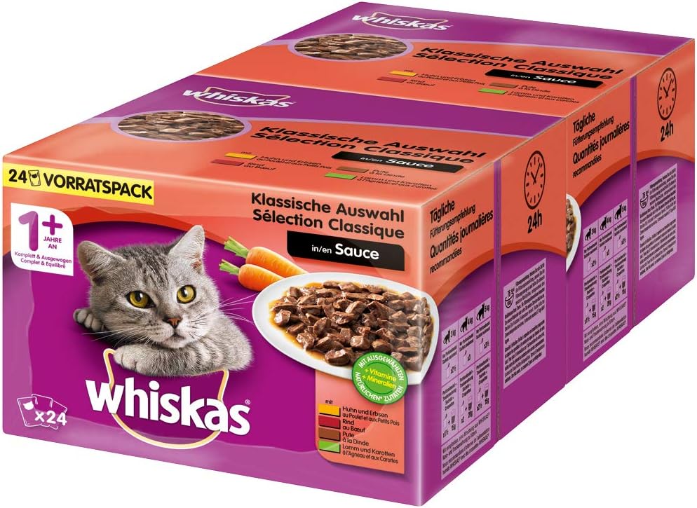 Whiskas 1 Katzenfutter Klassische Auswahl In Sauce Hochwertiges Nassfutter Fur Eine Gluckliche Katze 2 X 24 Portionsbeutel A 100g Amazon De Haustier