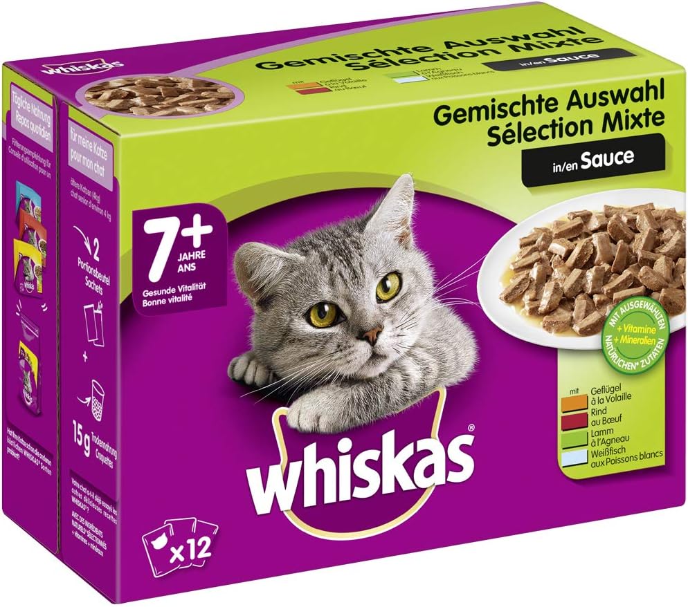 Whiskas 7 Katzenfutter Gemischte Auswahl In Sauce Hochwertiges Nassfutter Fur Katzen Ab 7 Jahren Und Alter Fur Die Bewahrung Der Vitalitat 48 Portionsbeutel A 100g Amazon De Haustier