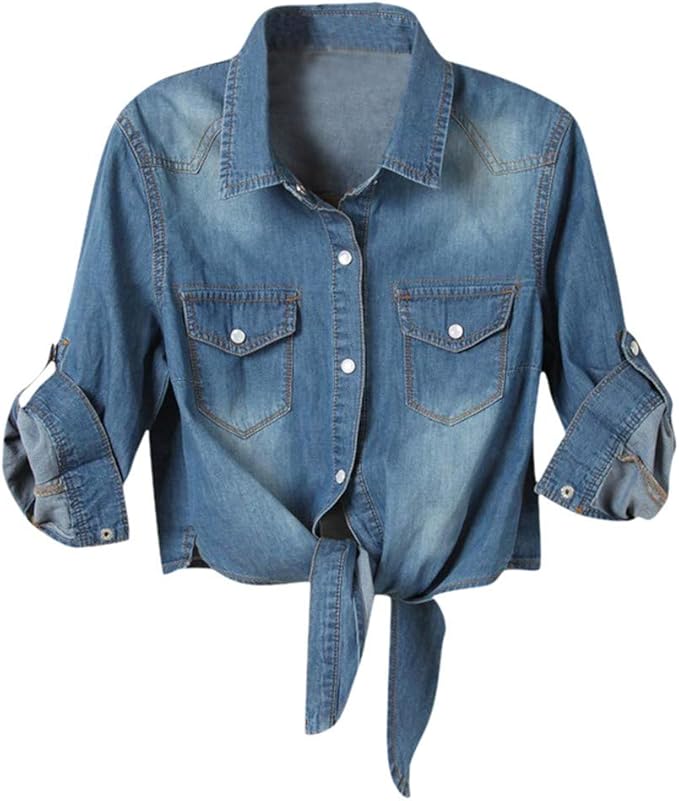 Geilisungren Damen Jeansjacke Kurz Denim Jacke Umlegekragen Knopfe Halber Armel Bandage Outwear Bolero Frauen Cropped Cardigan Bolerojacke Fur Sommer Herbst Jacken Mantel Westen Mantel