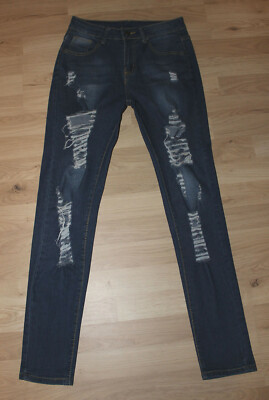 Shein Damen High Waist Skinny Jeans M Rissen Ausfransungen S 36 Blau Ebay