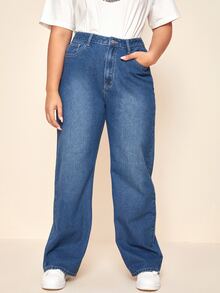 Jeans Mit Hoher Taille Und Breitem Beinschnitt Aktuelle Trends Gunstig Kaufen Shein Deutschland
