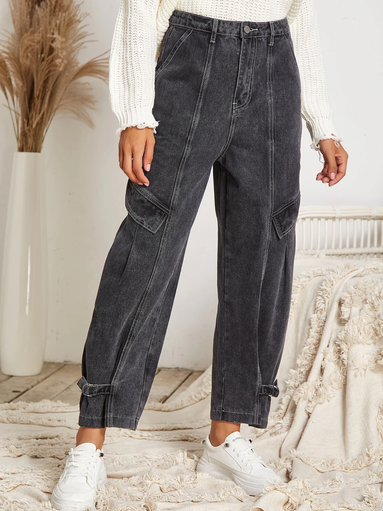 Jeans Mit Hoher Taille Und Schragen Taschen Aktuelle Trends Gunstig Kaufen Shein Deutschland