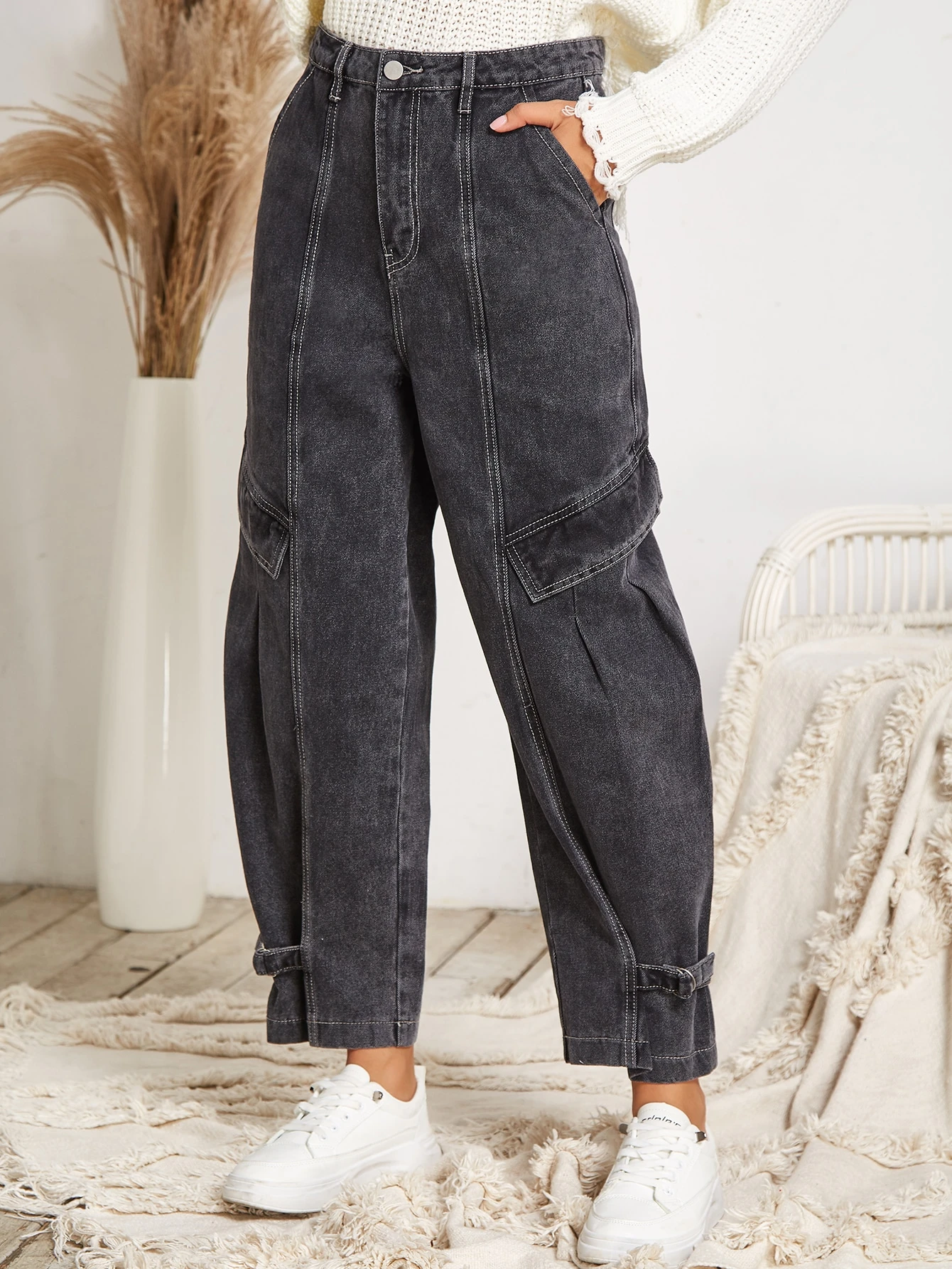 Mom Jeans Mit Hoher Taille Und Schragen Taschen Aktuelle Trends Gunstig Kaufen Shein Deutschland