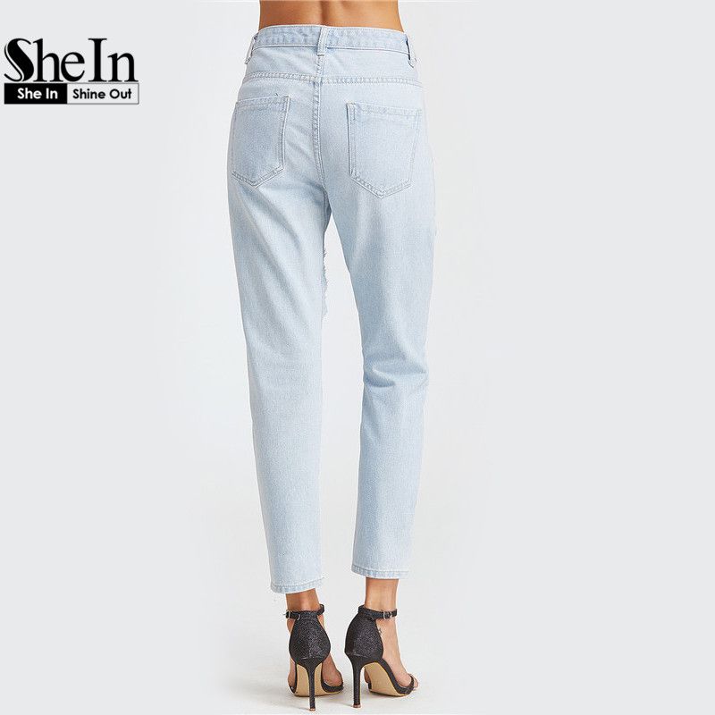 Boyfriend Denim Hose Mit Zerrissenen Designs Blua German Shein Sheinside Destroyed Jeans Mutter Jeans Hosen Damen