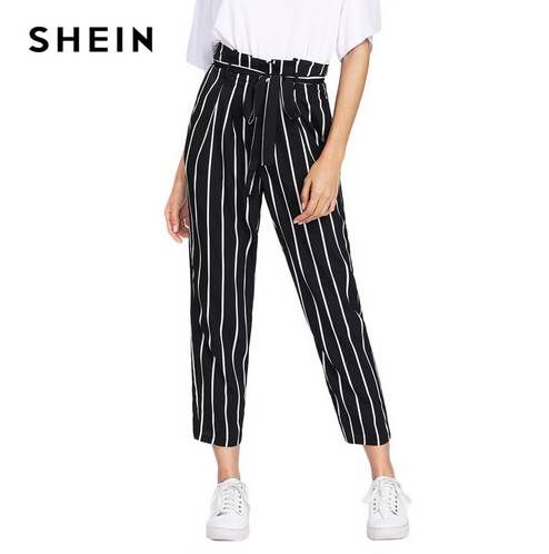 Grosshandel Shein Selbst Gurtel Gestreifte Hose Damenmode Kleidung Hohe Taille Reissverschluss Fliegenhose 18 Fruhjahr Neue Lassige Karottenhose Von Matthieuvenot 54 Auf De Dhgate Com Dhgate
