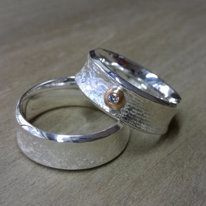 Trauringe Rotgold Weissgold Bicolor Mit Stein Breit Matt Poliert Passende Eheringe Fur Eure Hochzeit Auf Auroni Trauringe Coole Trauringe Ehering Rotgold