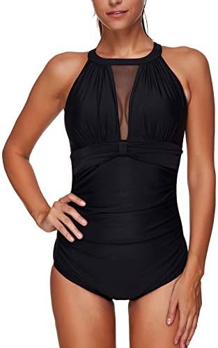 Damen Achruor Badeanzug Damen Monokini Bauchweg Schlankheits Raffung Einteiler Schwimmanzug High Neck Bademode Frauen Strandmode Sport Freizeit Luxdental Si