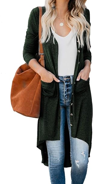 Kissmoda Ladies Front Offnen Lange Strickjacken Mit Knopfen Und Taschen Fur Damen Pullover Strickjacken Bekleidung