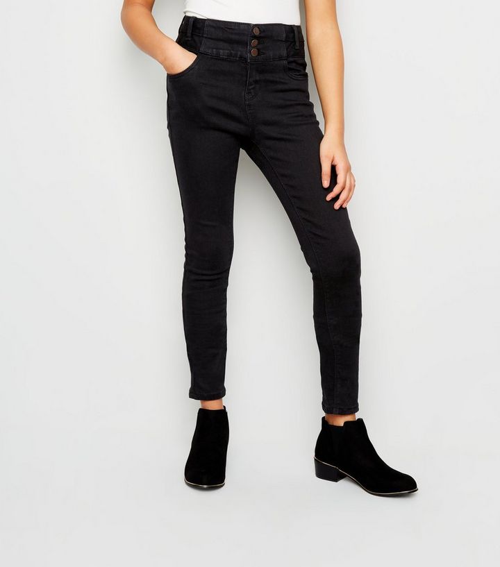 Hallie Schwarze Superenge Skinny Jeans Mit High Waist Und Zerrissener Kniepartie From New Look On 21 Buttons