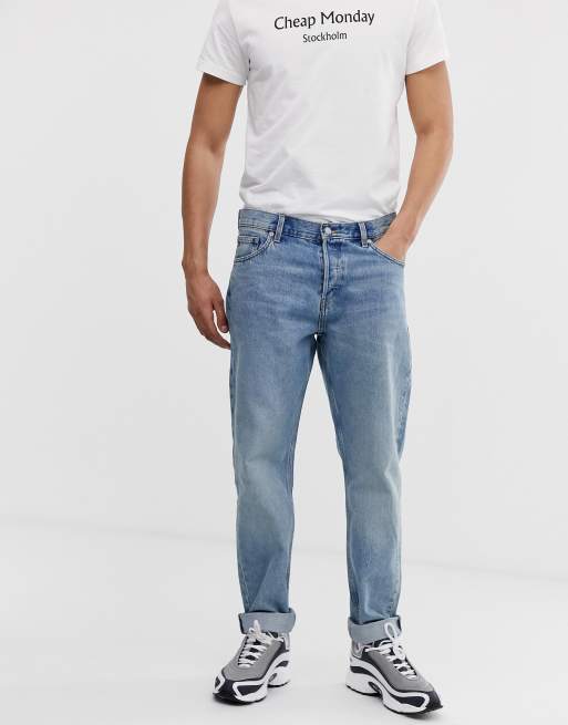 Available in a variety of washes and finishes, loose jeans are as relaxed as they come Perfect for nailing that laid back look, loose jeans hang comfortably on the hips and slightly flare out at the knee, similar to bootcut jeans Wear with boots and a polo shirt to complete the look. Bershka loose fit jeans with rips in mid blue wash £4599 ASOS DESIGN stretch slim jeans in flat light wash blue with abrasions and knee rips £30 Pull&Bear super skinny jeans with knee rip in light wash blue £2599 Jack & Jones Intelligence skinny fit ripped jeans in black wash. Discover our collection of men's loose fit jeans here at ASOS We have everything from loose boot cut jeans to loose skinny jeans & more.