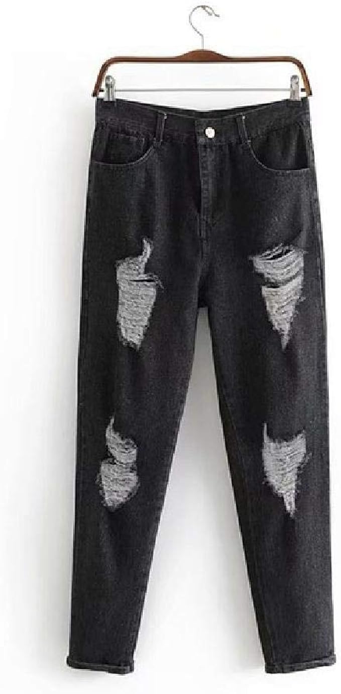 Hddyj Jeans Ripped Jeans Damen Black Female Denim Pluderhosen Amazon De Bekleidung