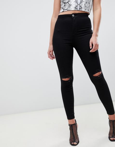 Discover our skinny styles Feeling edgy?. Go on a jean streak and look fire in these black jeans From mom to skinny to cropped, there's no such thing as too much denim For the warmer months, if your denim is dragging you down, look to the lightweight super stretch jeans to fill in the seasonal gap. ASOS DESIGN high rise ridley 'skinny' jeans in clean black with ripped knees ASOS (USA) $ 2760 LINKSHARE "coyote_sc" Topshop Women's Topshop Jamie High Waist Ripped Skinny Jeans, Size 30 Black NORDSTROM $ 7500 LINKSHARE "coyote_sc" Tinseltown Tinseltown Juniors' Ripped RawEdged Skinny Jeans Macys $ 4900.