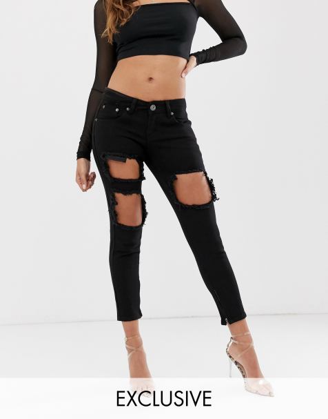 Shop hundreds of black ripped jeans deals at once We’ve got black ripped jeans savings and more. Women's Black Jeans & Denim Pick Up Set location off 630 items Topshop Jamie High Waist Ripped Hem Skinny Jeans (Regular & Petite) Was $7500 Now $2812 63% off (9) Free Delivery LimitedTime Sale MOTHER The Looker Frayed Ankle Skinny Jeans (Not Guilty) $ (52) Free Delivery. Shop New Look's latest collection of women's jeans for staple skinny, ripped and boyfriend fits that are perfect for day to night, to ontrend frayed hem jeans and embellished jeans Free delivery and Click & Collect available.