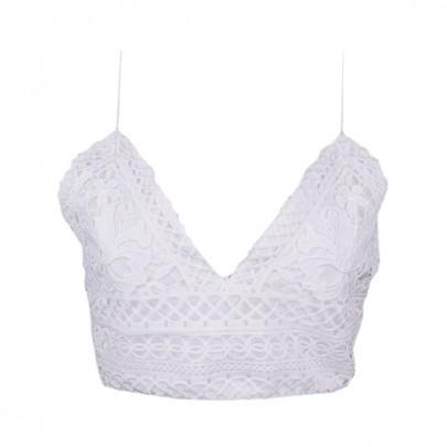 Weiss Splicing Blumen Spitze Spaghettitrager Tiefer V Ausschnitt Mode Weste Bra Crop Top Bustier Bh From Cichic On 21 Buttons