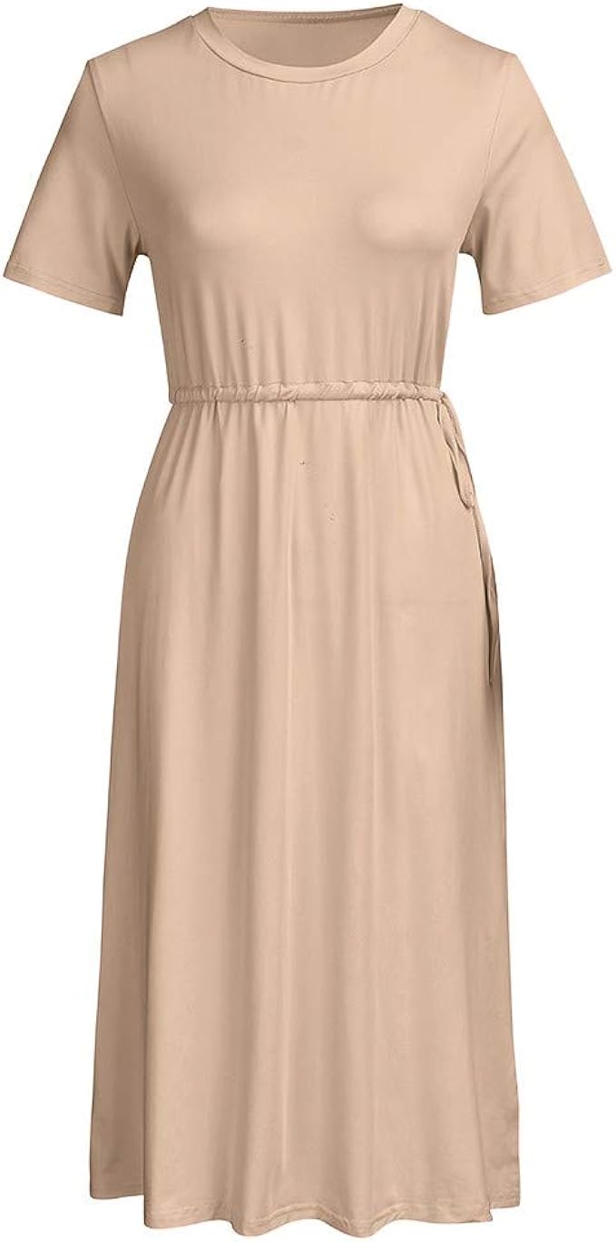 Goosuny Damen Sommer Kleid Knielange Einfarbig Kurzarm Sommerkleider Rundhals Midi Freizeitkleid Mode Elegante Kleider Hemdkleid Abendkleid Lang Abendkleider Amazon De Bekleidung