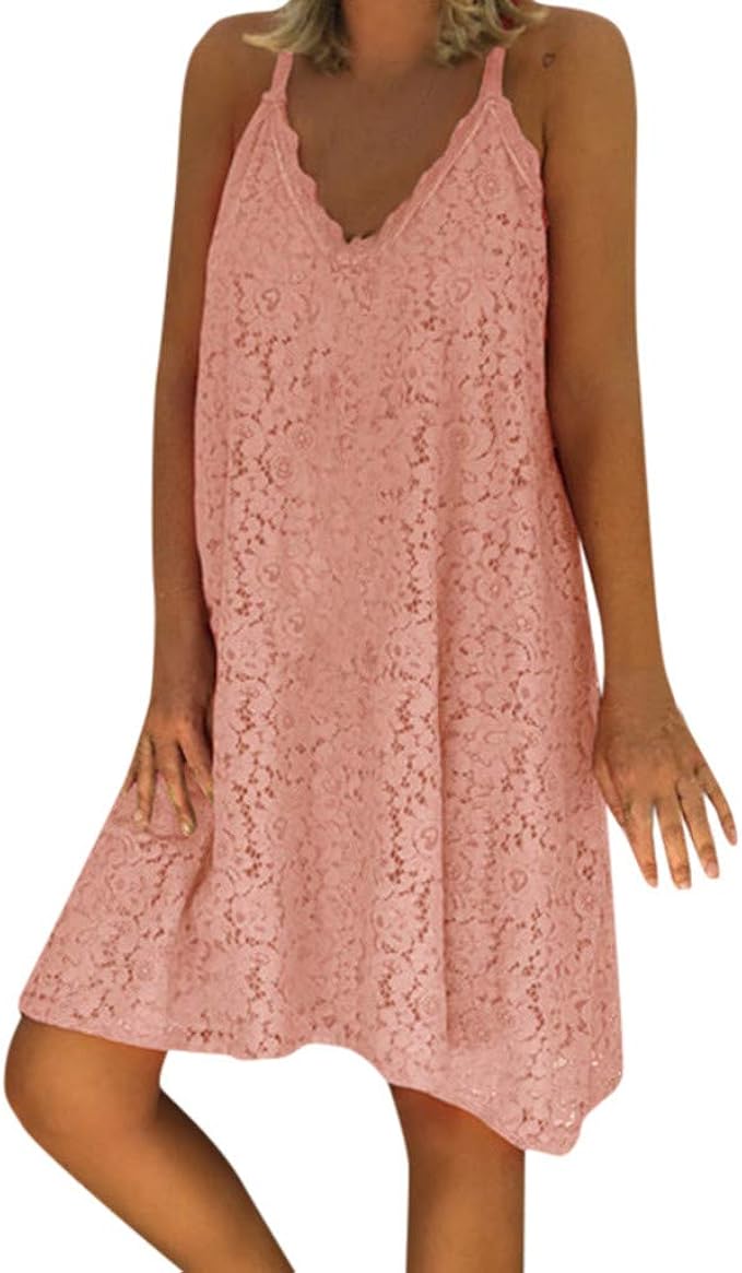 Goosuny Kleider Damen V Ausschnitt Spitzenkleid Armelloses Sommerkleider Kurz Kleid Oversize Knielange Kleider Spitze Tunikakleid Tragerkleid Spaghetti Buegel Strandkleider Amazon De Bekleidung