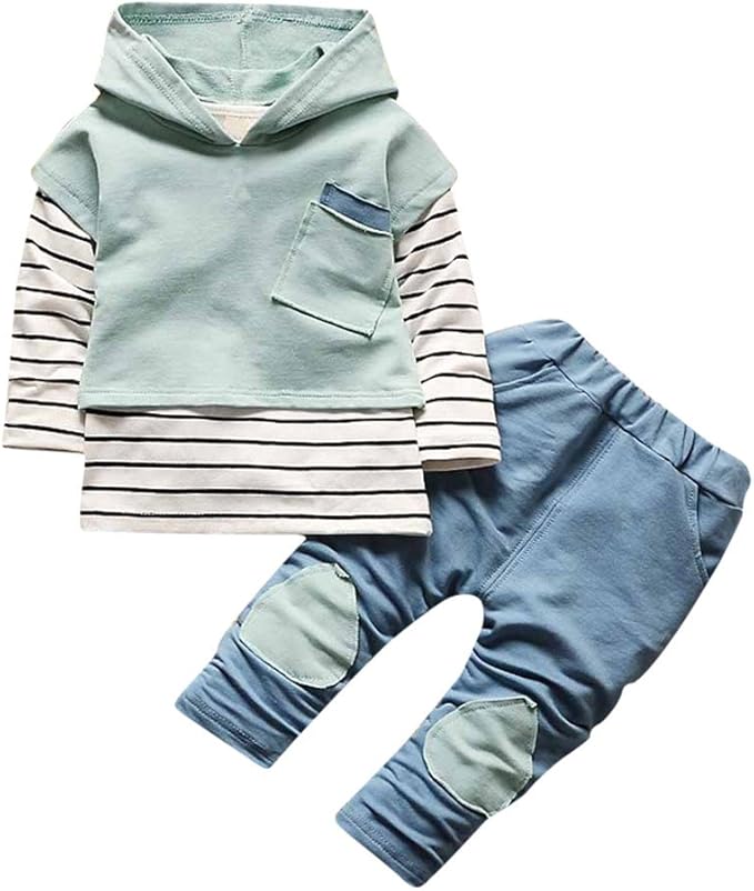 Baby Jungen Madchen Outfits Bekleidung Set Ttlove Herbst Winter Babykleidung Baby Hoodie Streifen T Shirt Tops Mit Kapuze Sweatshirt Hosen Kleidung Set Grun 90 Cm Amazon De Bekleidung