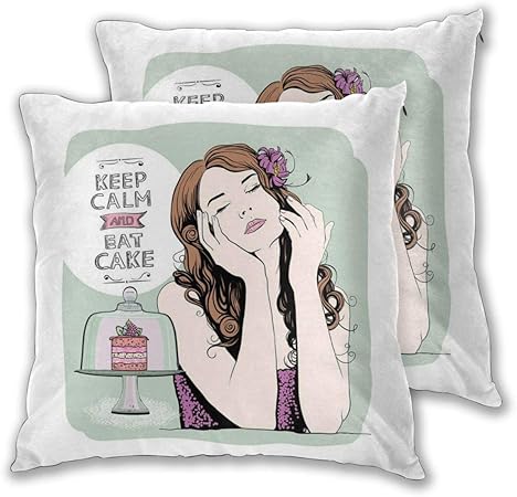 Lisniany 2er Set Dekorativ Kissenbezug Essen Sie Kuchen Schriftzug Mit Retro Stil Geschlossene Augen Hubsche Frau Und Susse Wuste 45 X 45cm Sofa Buro Dekor Kissenhulle Amazon De Kuche Haushalt
