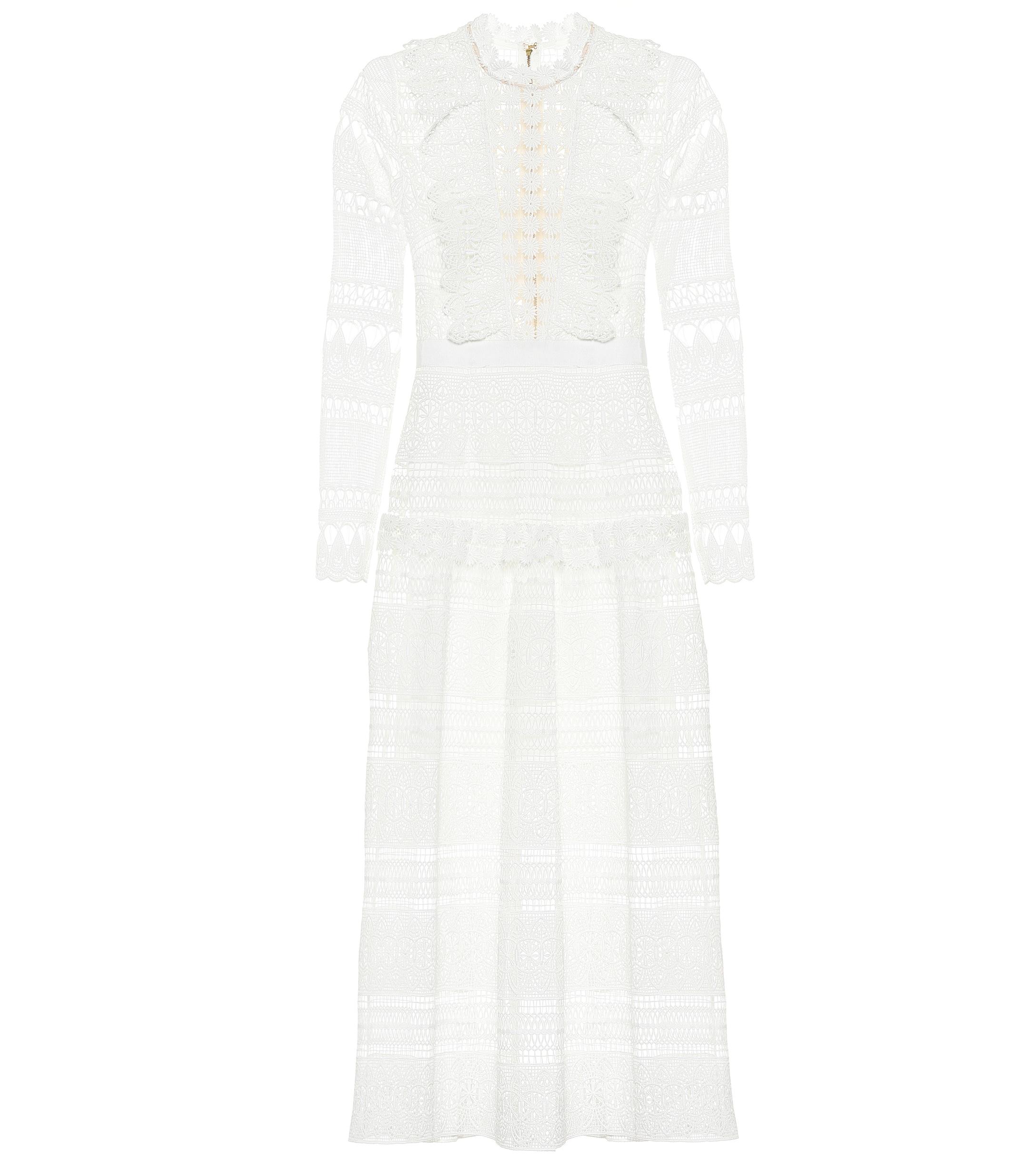 Weiss Midikleid Aus Guipure Spitze Mit Ripsbandbesatz Self Portrait Net A Porter