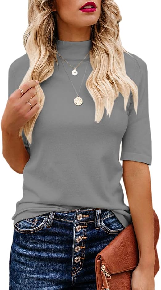 Tops T Shirts Blusen Damen Abollria Damen Rollkragenshirt Elegant Kurzarm Rolli Basic Stretch Pullover Leicht Rollishirt Zum Unterziehen T Shirts Bekleidung