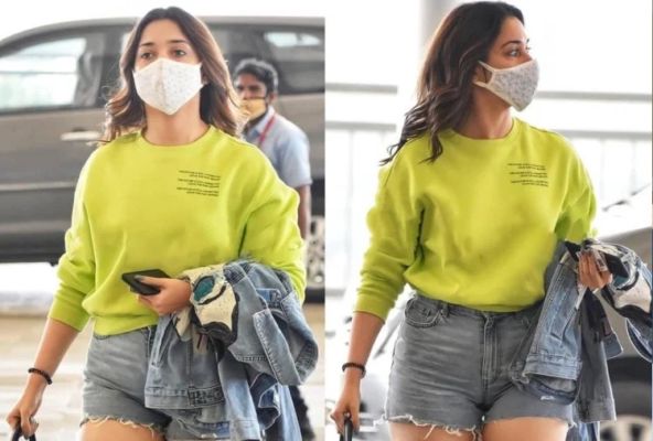 Spotted Tamannaah Bhatia Rocks A Lime Green Sweatshirt And Shorts At Hyderabad Airport Telugu Movie News Times Of India
