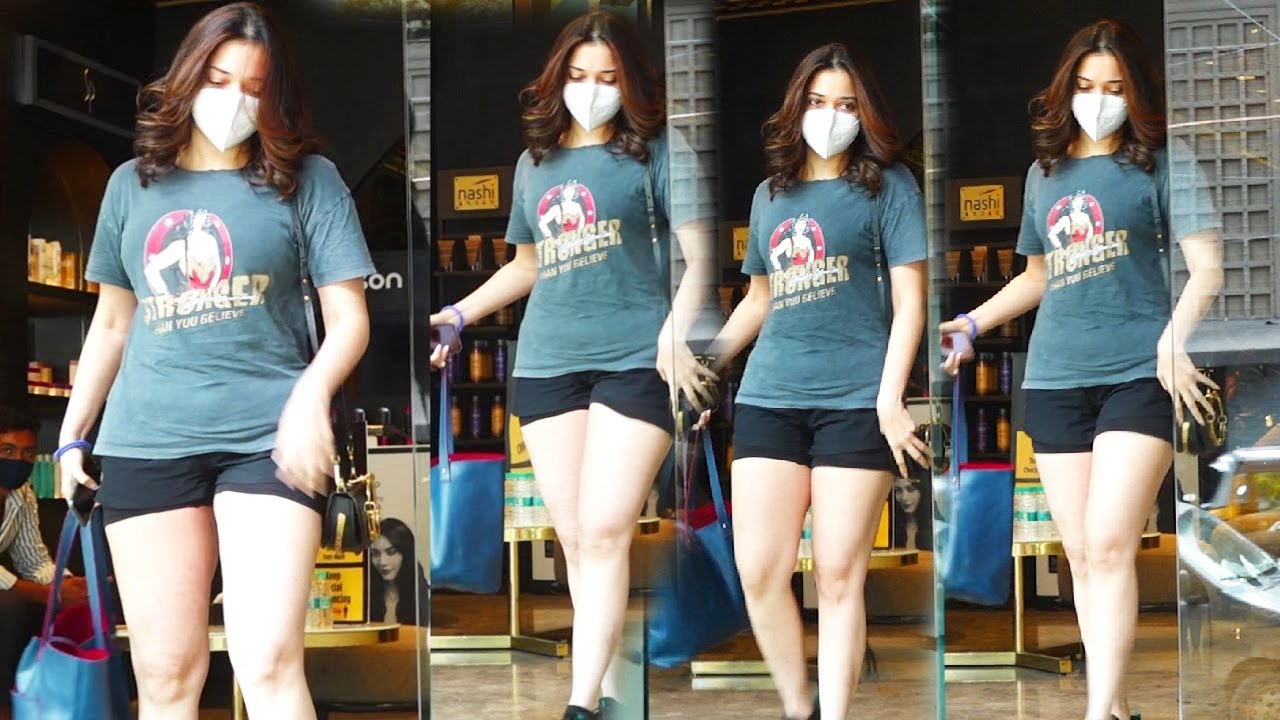 Bahubali Actress Tamanna Bhatia L00ks Hot In Short Th Ghts T Shirts Spotted At Hm Luxury Salon Youtube