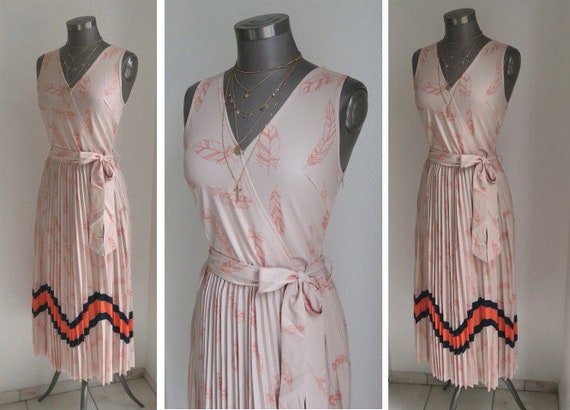 Midi Kleid Mit Plissierten Rockteil Federn Print Und Color Etsy