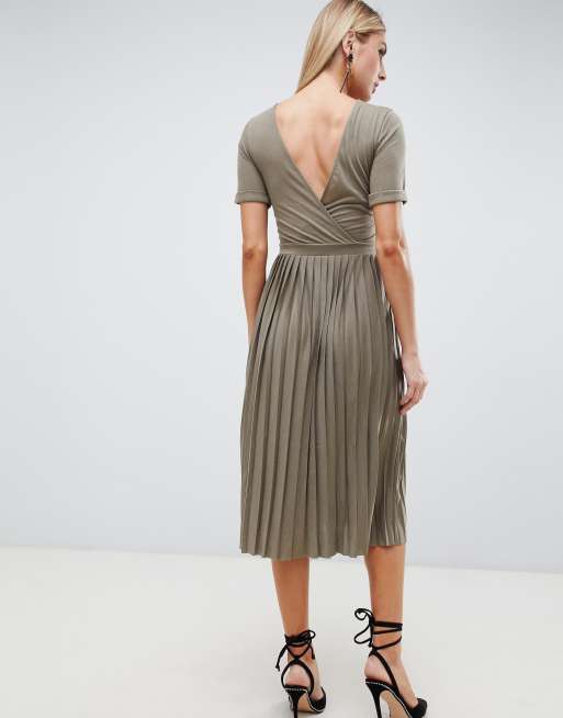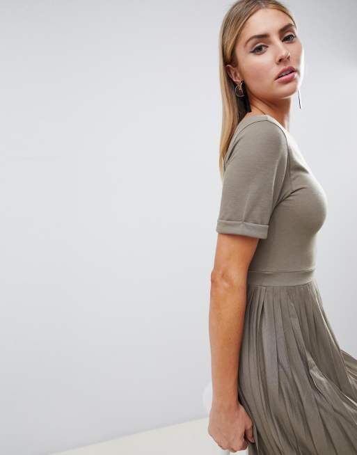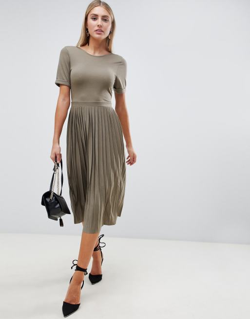 Asos Design Khaki Kleid Mit Plissiertem Rock Asos